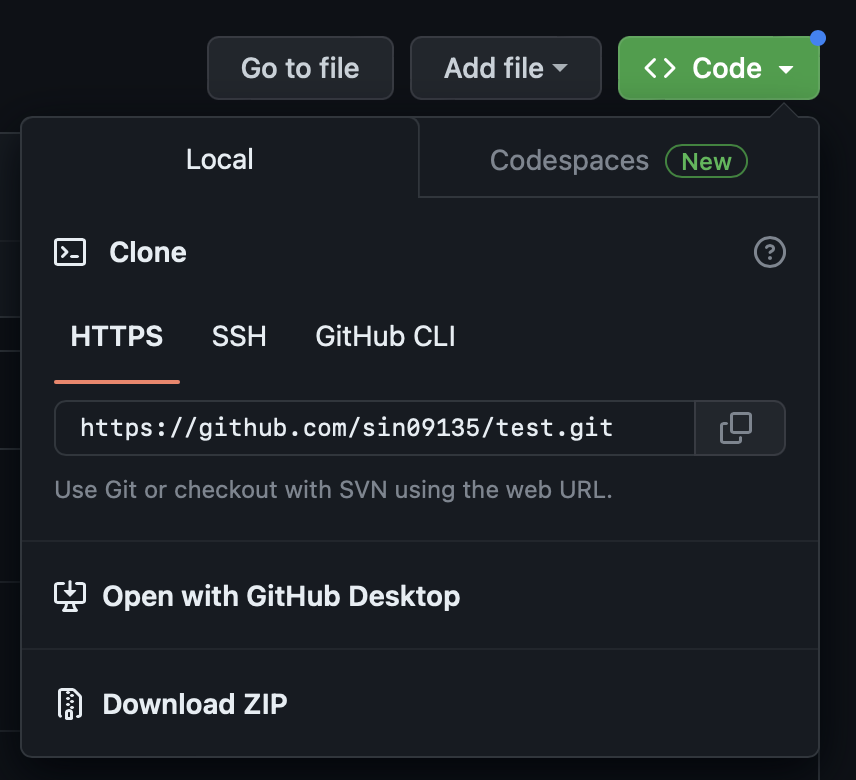 - 이전에 생성한 GitHub 레포지토리 주소를 복사합니다.