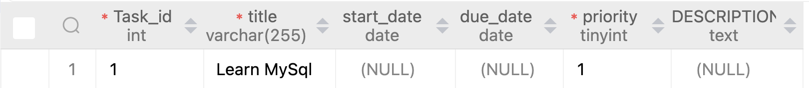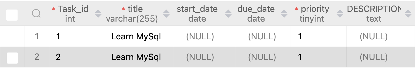 VALUES ('Learn MySql', 1);