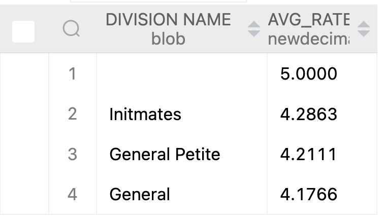 - Division Name 별 평균 평점