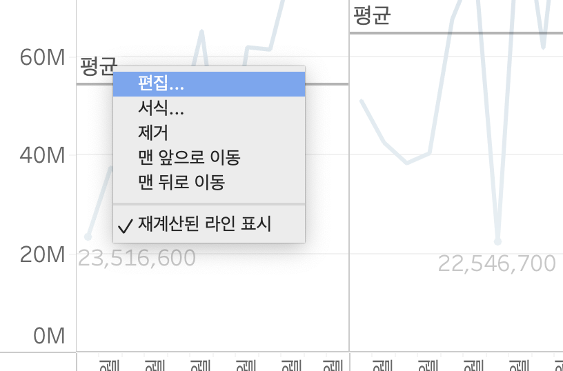 분석 테이블의 평균라인을 테이블로 끌어온다. > 평균라인