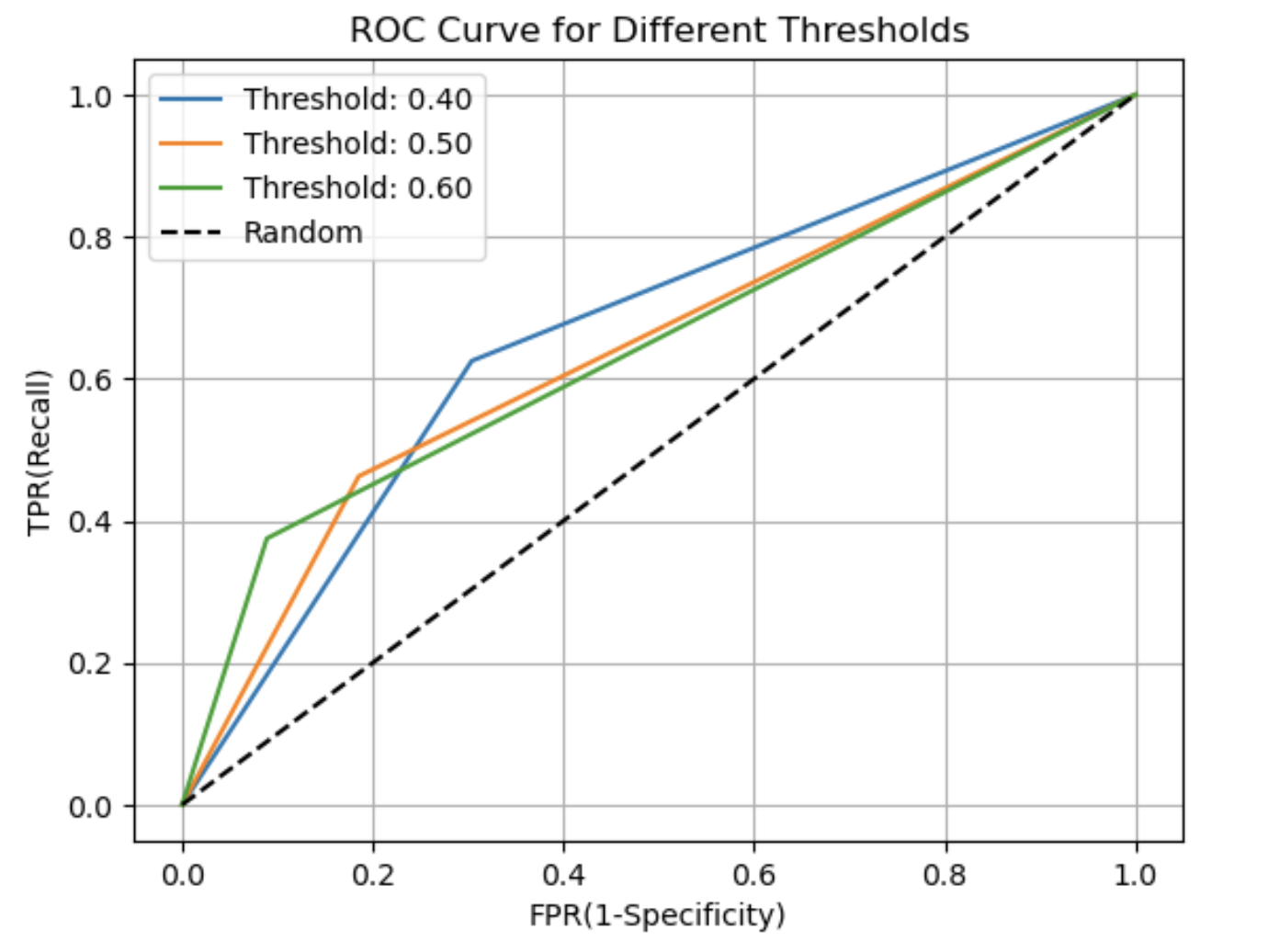 # 임계값에 따른 FPR, TPR 계산